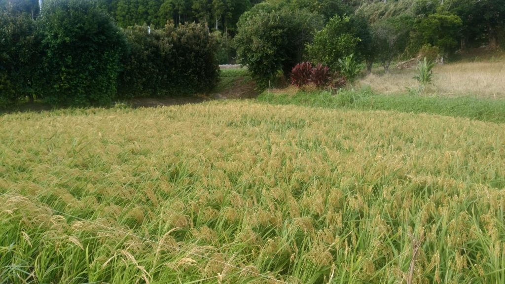 種子島の早期水稲は3月下旬から4月上旬に田植え、7月下旬から8月上旬に刈取をします。ですが吟のさとは6月中旬に田植えを行い10月上旬に刈取を行います。これだけの時期がずれています。ここまでずれると水の管理問題がおき水を入れる時期と水をぬいて乾かす時期が真逆になります。ですので単独で水の管理ができる田んぼを叔父からかりました